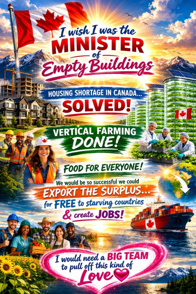 Hey Mark Carney, I just wrote my own job description for you to offer me. And Prime Minister Mark Carney, I accept the position of Minister of Empty Buildings… with all my heart, I accept 💖